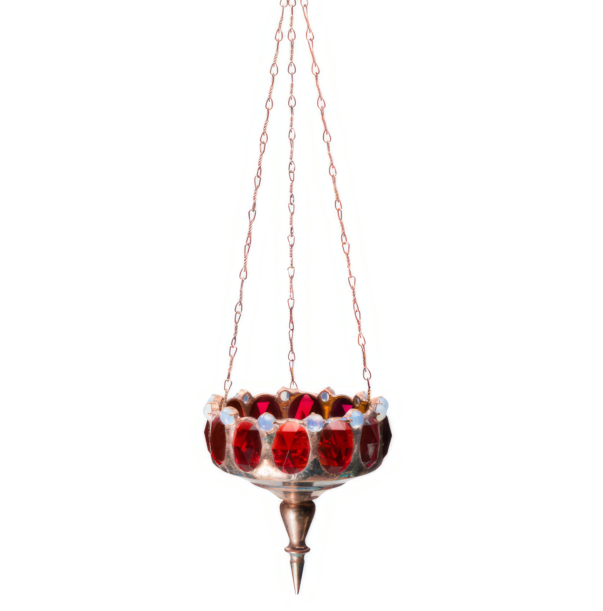 Kleine rosa, ova­le Steine im Rautenschliff mit klei­nen, run­den Opalgläsern.