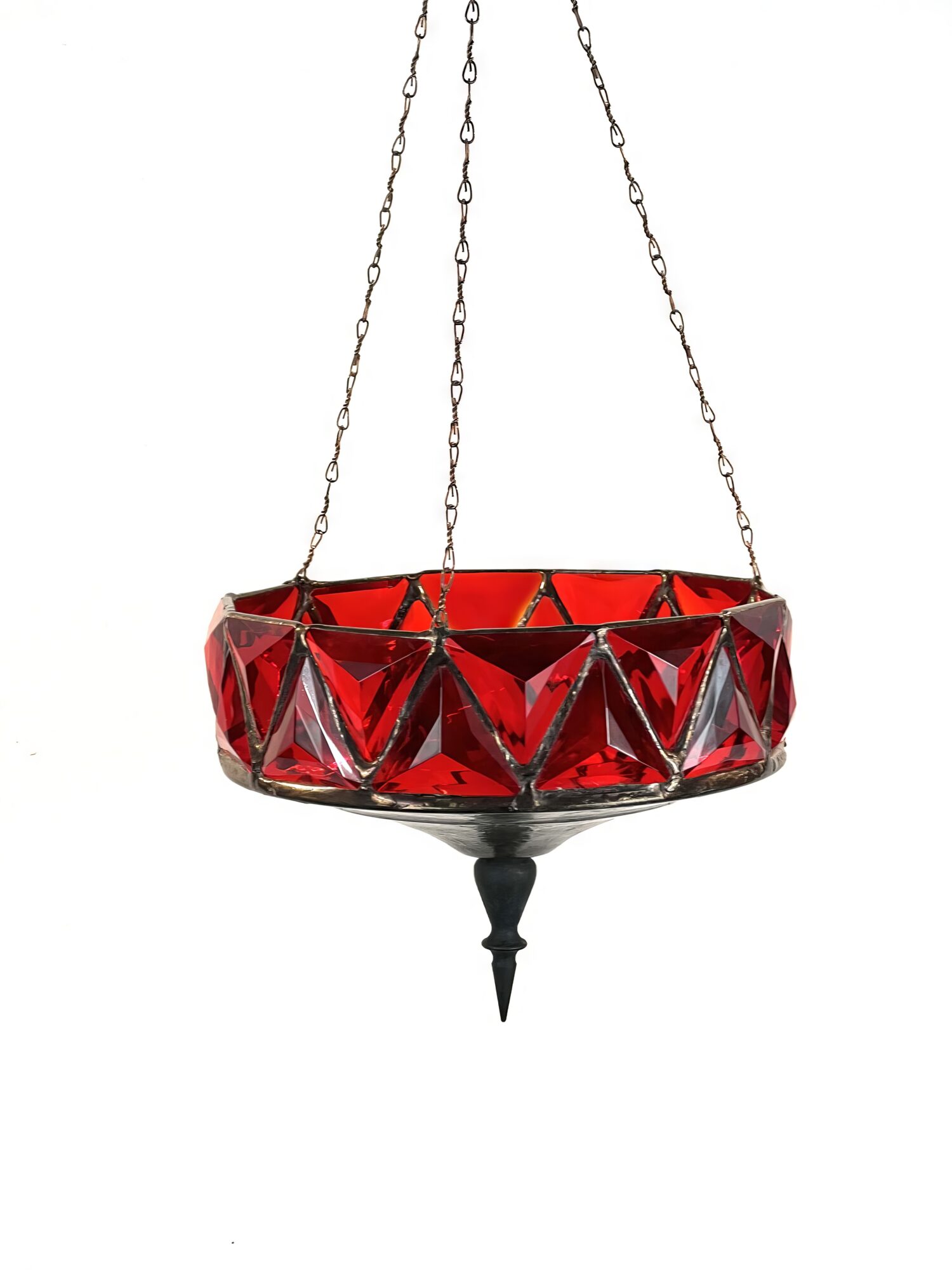 Große, rote, drei­ecki­ge Steine im rau­ten schliff