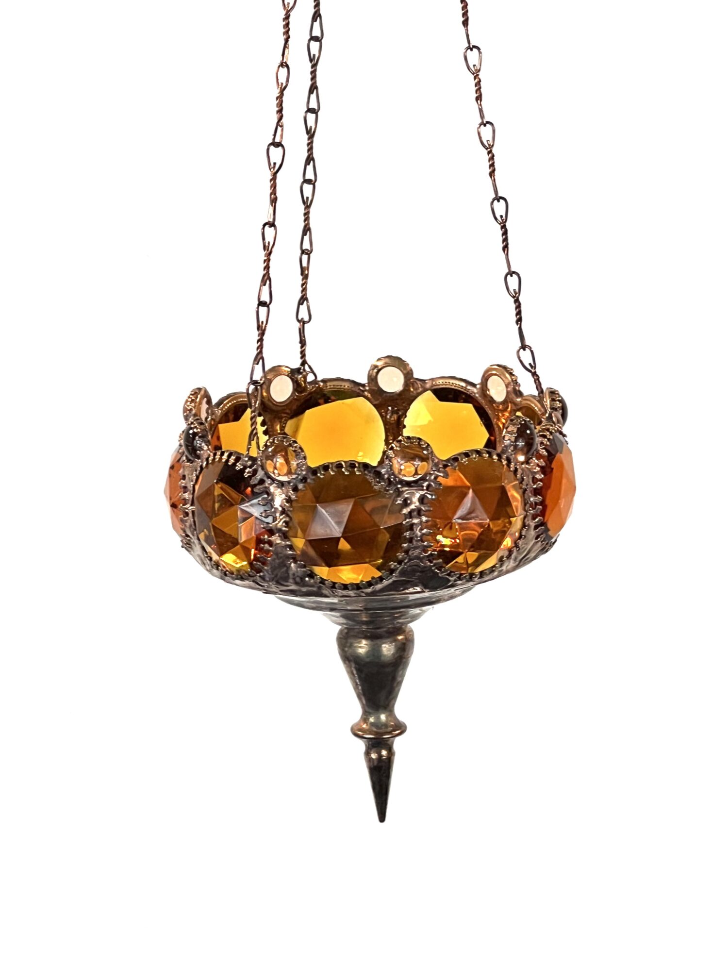 Topasfarbene Steine im Rautenschliff mit klei­nen, run­den, glatt­ge­schlif­fe­nen Steinen in Topas. Durchmesser 7,5 cm