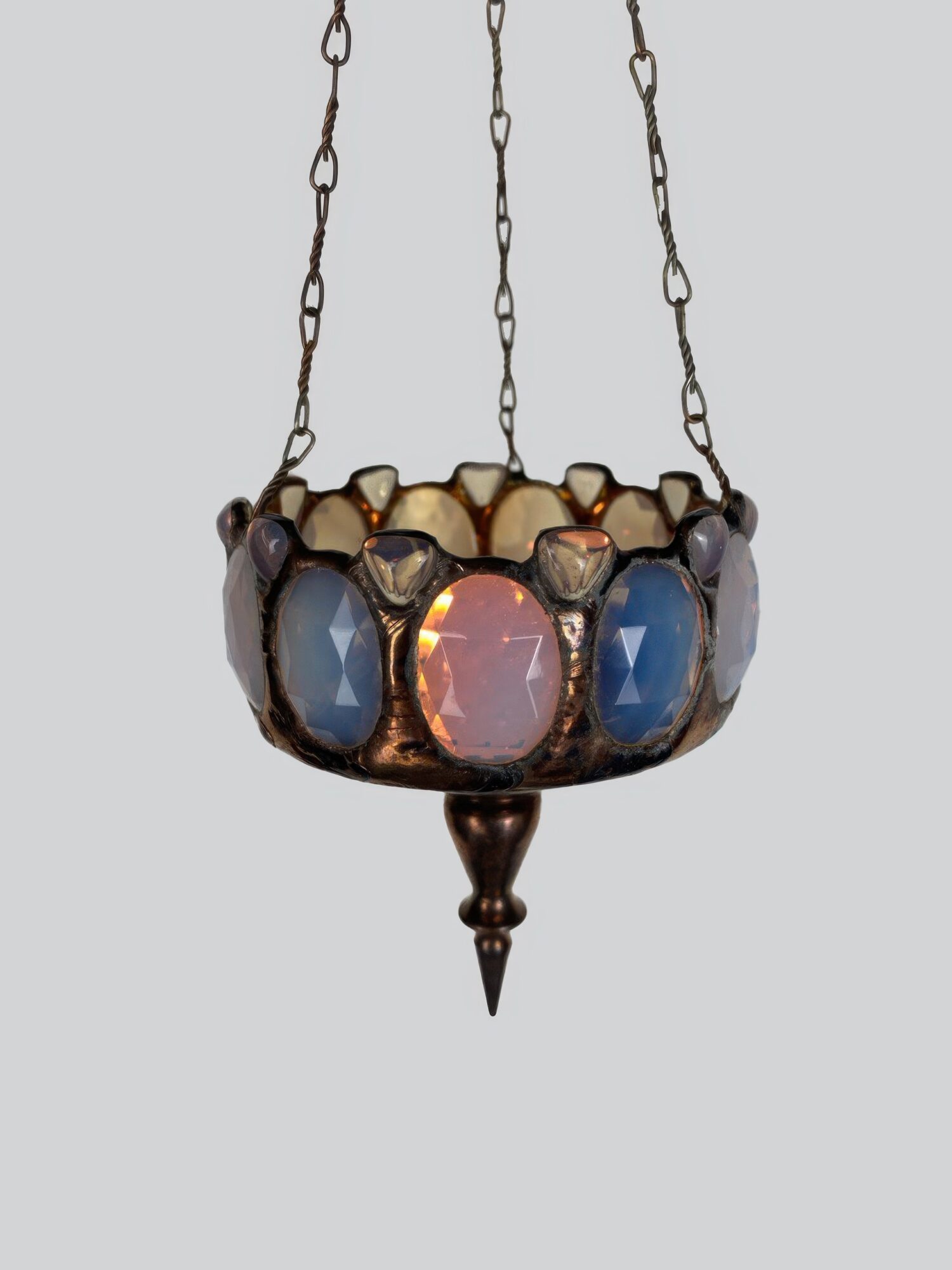 Ovale Opal Gläser mit klei­nen drei­ecki­gen Steinen, eben­falls in opal.